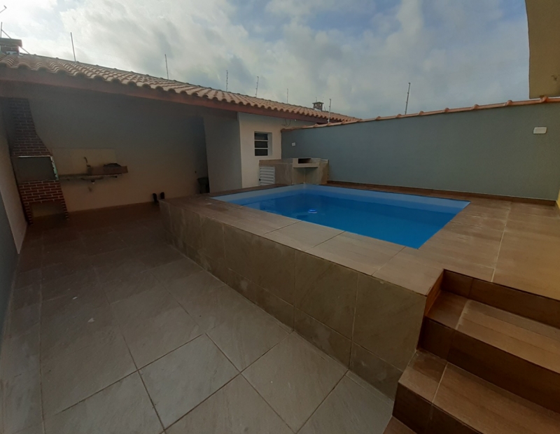 Bela piscina, área de churrasqueira coberta, lavabo.