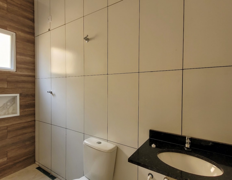 Casa com 3 dormitórios sendo 1 suite, wc social, sala e cozinha americana.