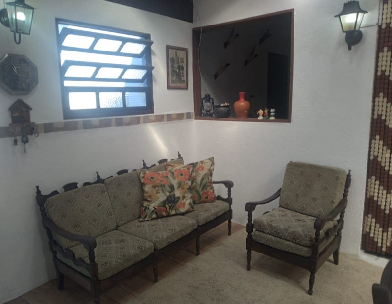 Casa Principal: 3 Dormitórios aconchegantes (sendo 1 suíte), equipados com ventiladores de teto para o seu conforto. A sala também conta com ventilador, garantindo um ambiente sempre fresco.
